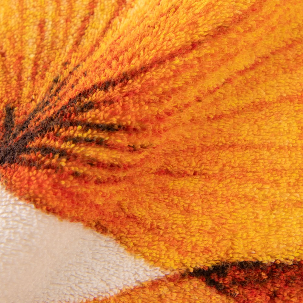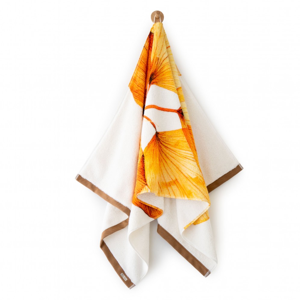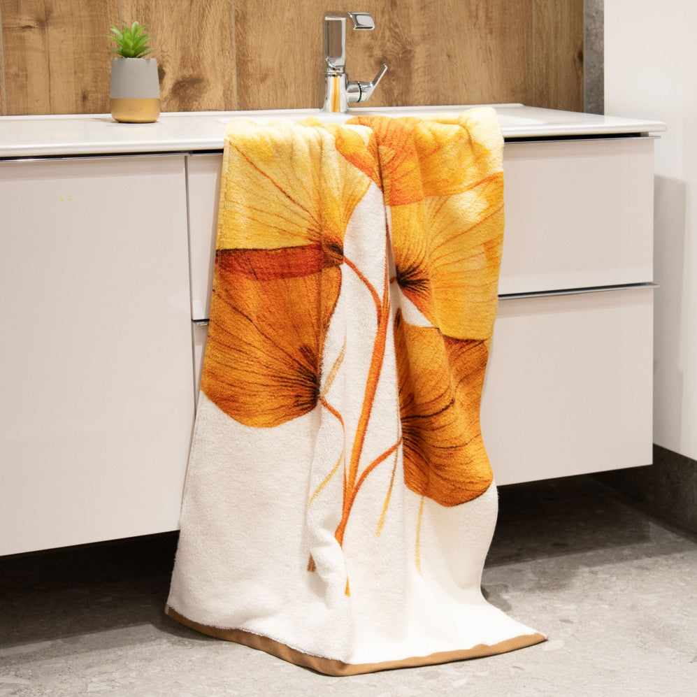 Realizat din 100% bumbac organic certificat GOTS, cu un gramaj generos de 650 GSM, prosopul oferă o atingere moale, o absorbție excepțională și o durabilitate remarcabilă. Imprimeul artistic, obținut prin tehnologie avansată, își păstrează intensitatea și strălucirea în timp.