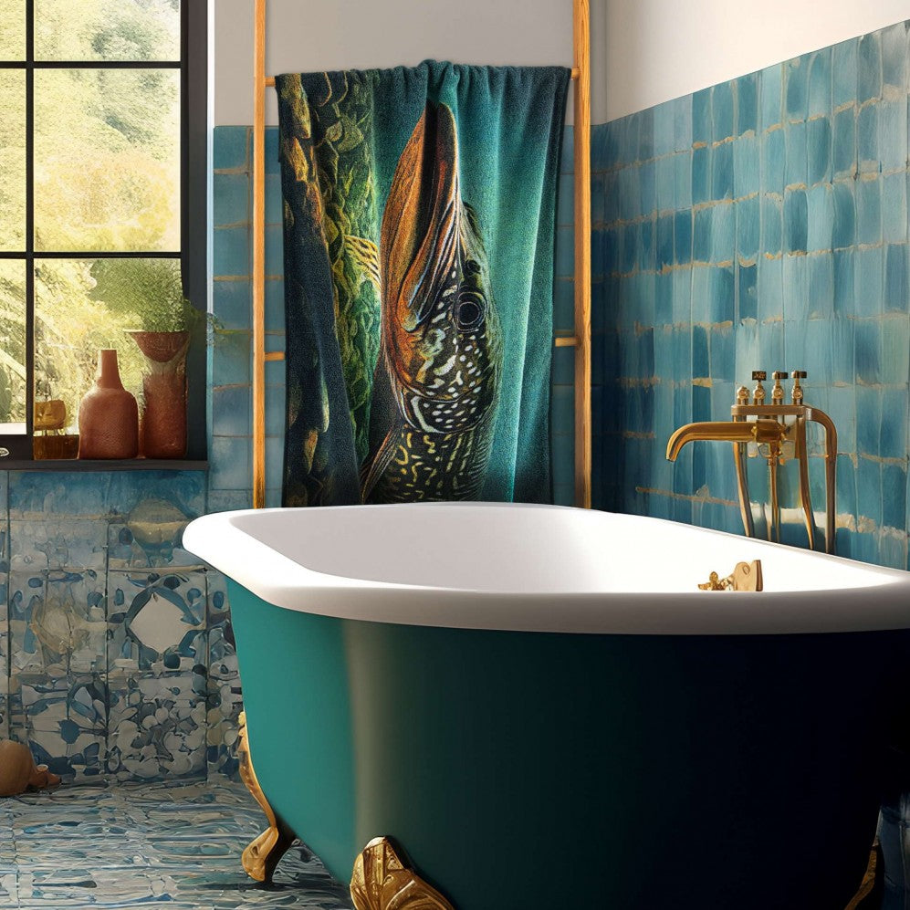 Descoperă prosopul artistic Știuca din colecția ART Design by Zwoltex, creat pentru cei care iubesc natura și calitatea autentică. Inspirat de frumusețea acvatică, designul său expresiv aduce un plus de personalitate și echilibru băii tale.