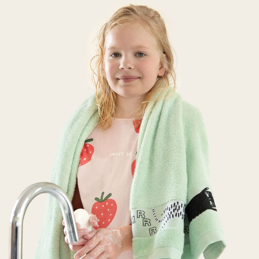 Colecția Cats este disponibilă în mai multe nuanțe pastelate, ușor de asortat cu decorul băii copiilor, fiecare variantă păstrând aceeași textură catifelată și prospețime la atingere.