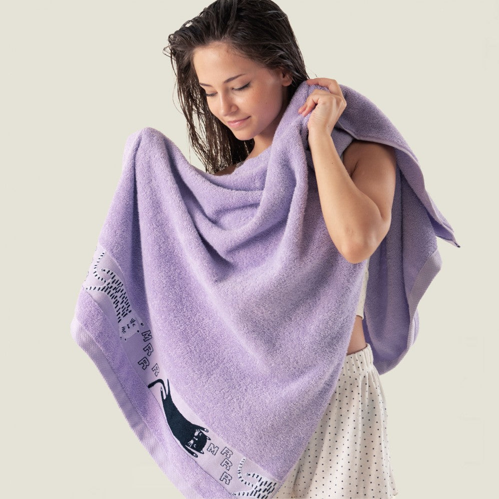 Colecția Cats este disponibilă în mai multe nuanțe pastelate, ușor de asortat cu decorul băii copiilor, fiecare variantă păstrând aceeași textură catifelată și prospețime la atingere.