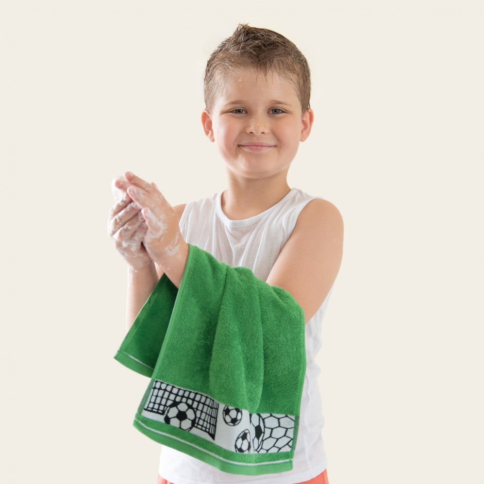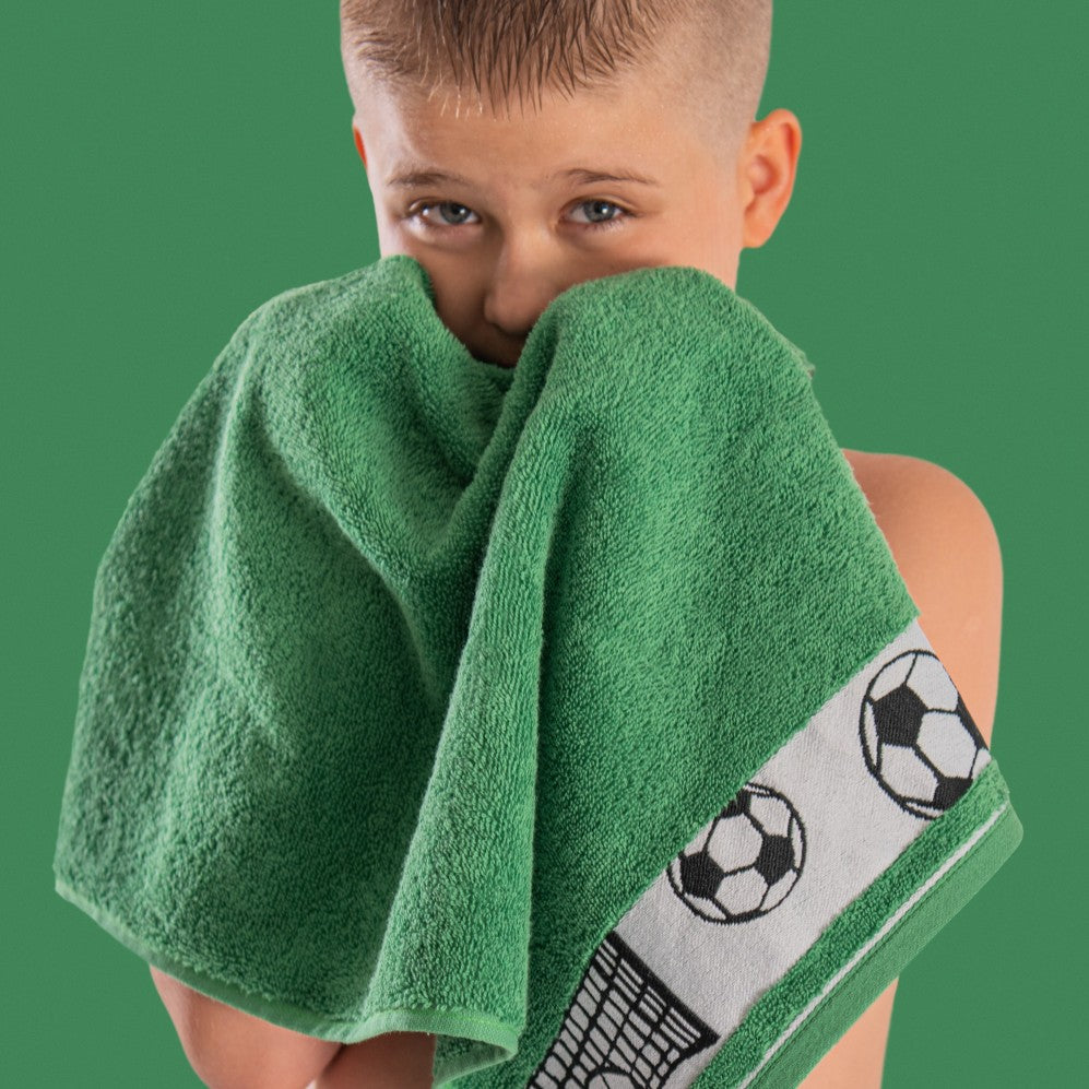 Prosopul Fotbal din bumbac egiptean 100% (400 g) este alegerea ideală pentru copiii activi. Moale, pufos și foarte absorbant, asigură confort și uscare rapidă după baie. Culoarea verde vibrantă și designul cu mingea de fotbal adaugă un strop de energie și veselie fiecărei zile.