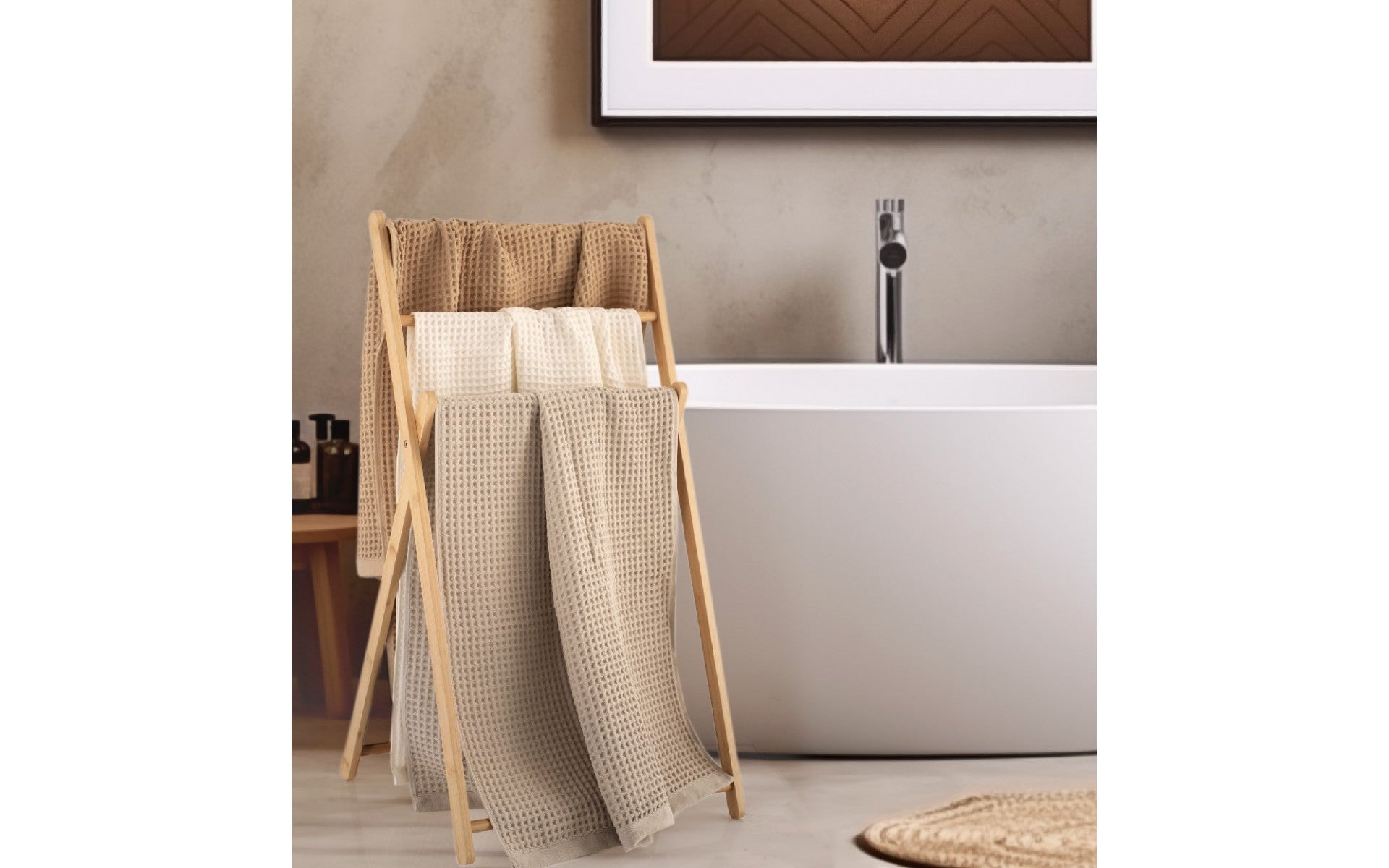 Creată pentru cei care apreciază frumusețea discretă, seria Natural îmbină eleganța texturii waffle cu confortul delicat al bumbacului egiptean. Ușoare, aerisite și extrem de absorbante, aceste prosoape se usucă rapid și ocupă puțin spațiu – perfecte pentru uz zilnic sau călătorii.