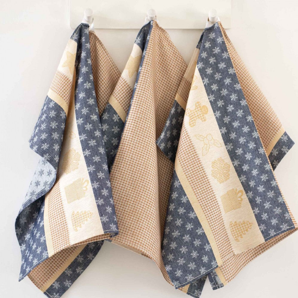 Inspirat de dulciurile de iarnă și momentele petrecute alături de cei dragi, setul Gingerbread aduce în bucătăria ta farmecul autentic al sărbătorilor. Confecționat din bumbac natural de înaltă calitate, este moale, durabil și extrem de absorbant – perfect pentru a adăuga confort și rafinament activităților zilnice.